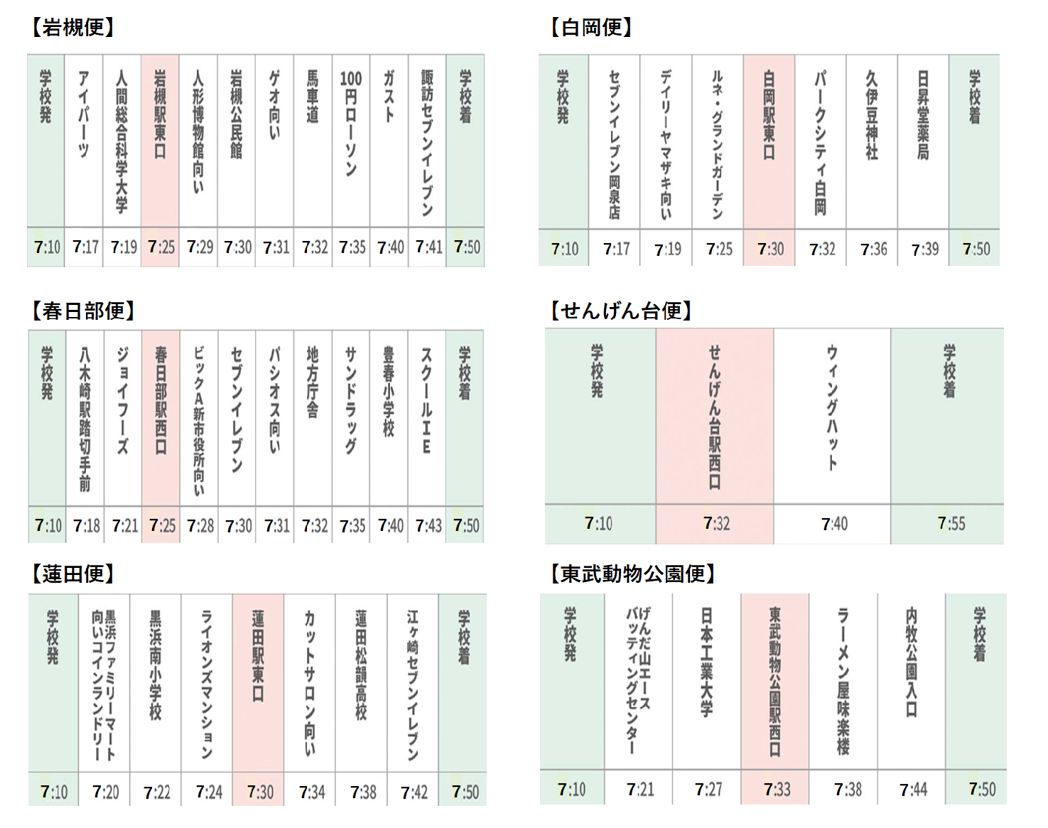 ※七里・深作便は8時台からの運行になりますので、お間違いがないようご利用ください。